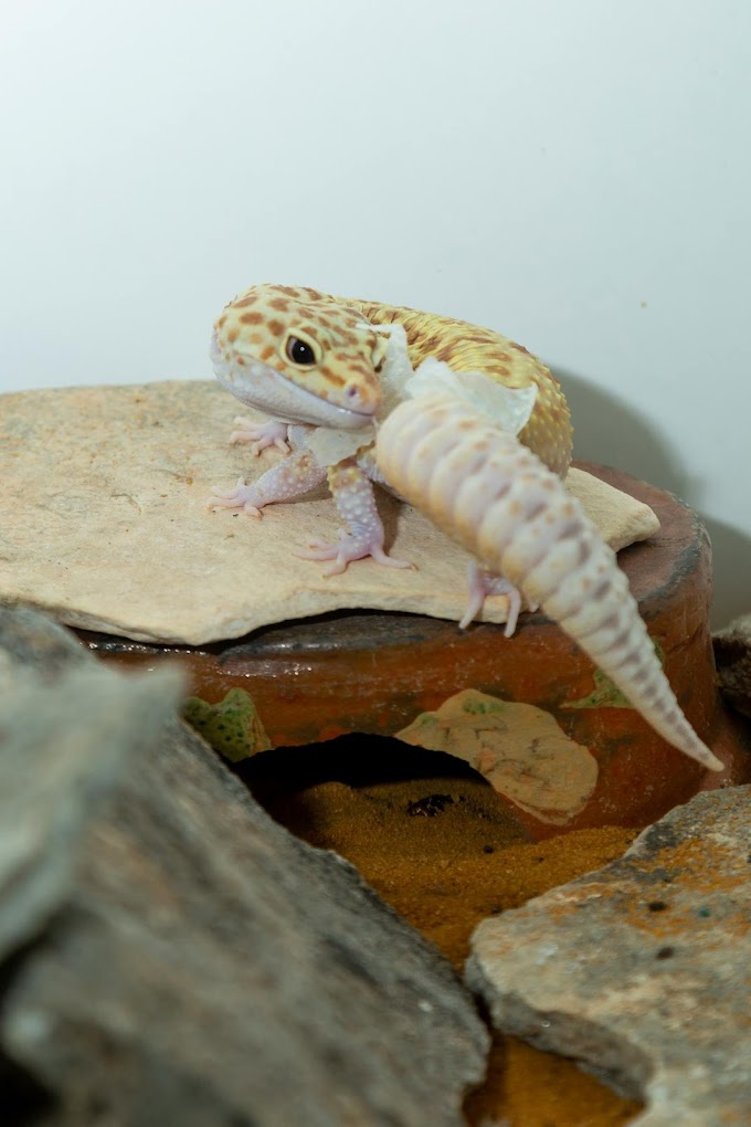 - Problemas de muda: A veces, los geckos leopardo no pueden desprender su piel por completo, lo que puede causar infecciones o heridas. Si notas restos de piel en los dedos o la cabeza, ayuda a tu gecko proporcionando un aumento de la humedad o utilizando un baño tibio.